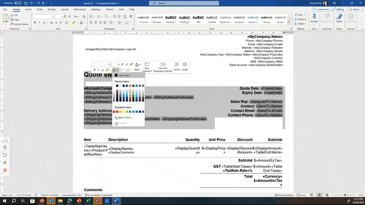 Make a lasting impression with professionally designed documents that align perfectly with your business branding. Using the Microsoft Word Add-In streamlines the process of giving your print-out documents the look and feel of your brand.