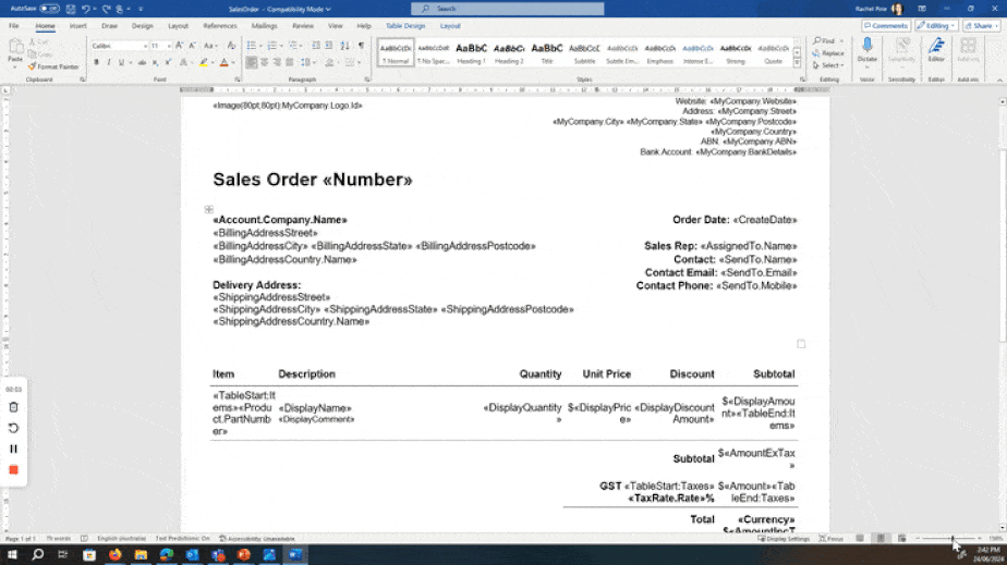 By using a Microsoft Word Add-In, CRM empowers you to self-serve the downloading, editing, and uploading of custom templates for the document types that matter most to your business. Whether you need to tailor an invoice to a specific client or create a unique sales order, it's all within your reach.